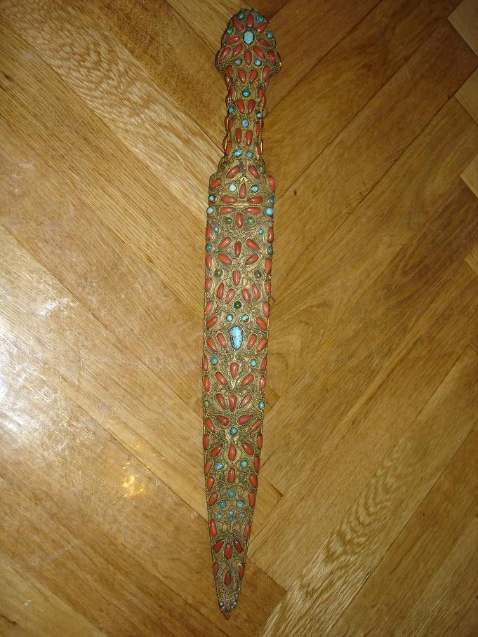 http://www.pbase.com/erlik30/inbox . i uploaded the pic. of my old coralled dagger . its corals are lowest quality, not artistically processed, just cut from necklace and placed, blue ones just beads instead of turquouise,scabbard white metal but still silver koftgari on both sides.