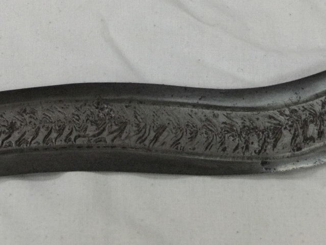 As for the asang-asang, I could and still can in one image posted see the evidence of this once being true and in place, albiet a long time removed when it first came to me. I was also taken by the hilt binding, it appeared to me multi coloured layers, dark/light, if only there was more of the original to know if the pattern continued to the pommel. Personal touches are just that personal. My touches would layer stack every 10mm a different lighter colour for effect as many Kris did have this undulating effect on grip wraps...I would even but a couple of thin rattan strips around the scabbrd for effect...again, my personal touches. I'll see how my computing skills are when I get home and maybe with some tuition put some pointer arrows on the image that shows where I think the asang-asang was. Gav |