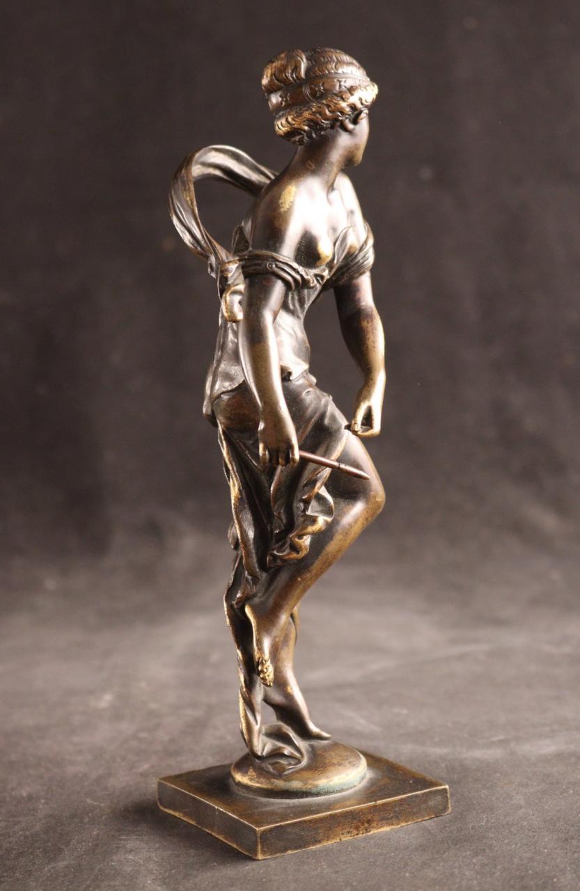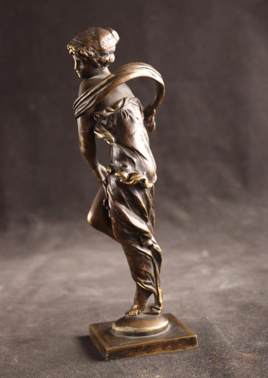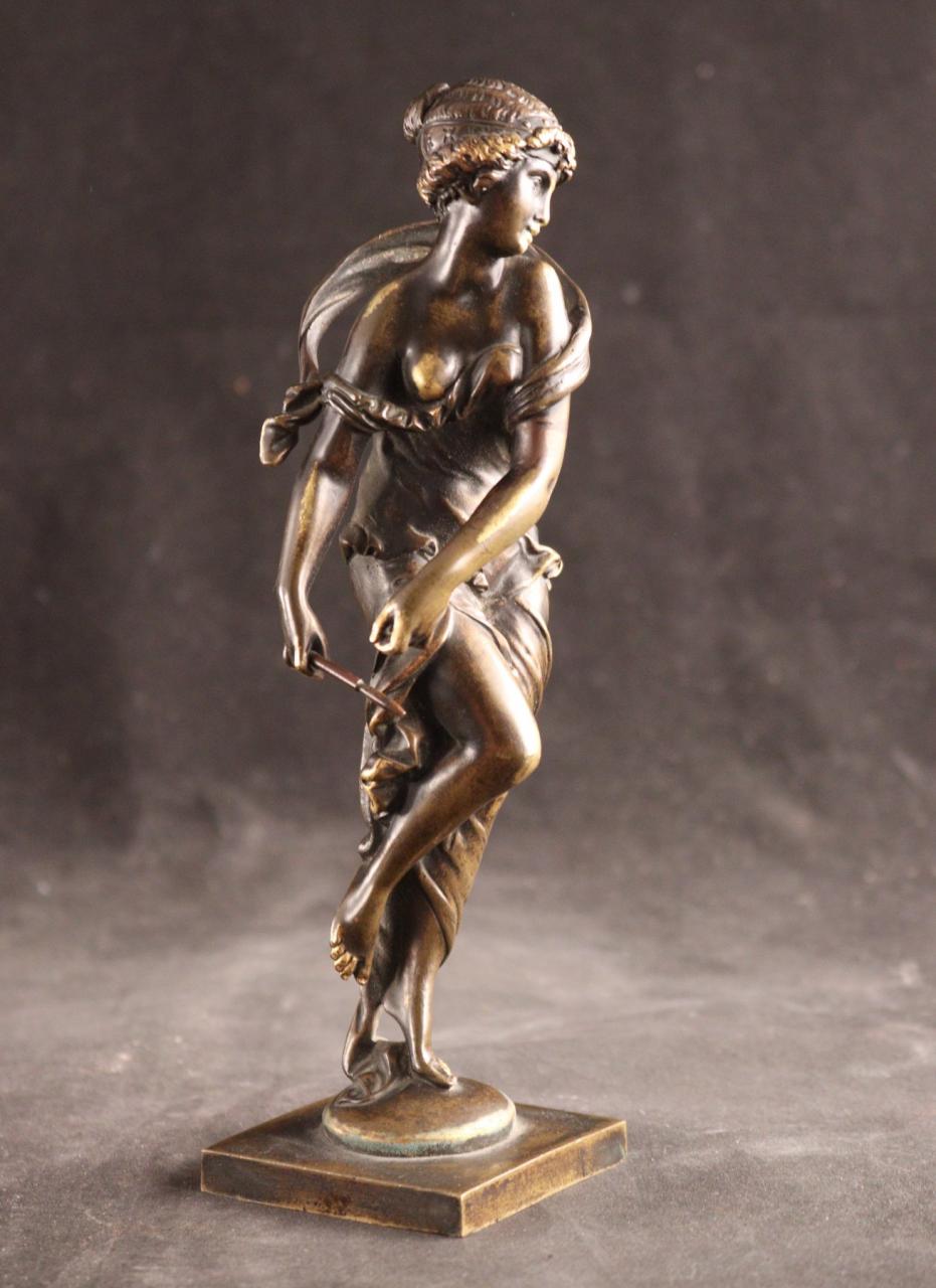 a very nice bronze sculpture of a half naked lady from the classical antiquity preparing to lash out with a dagger.