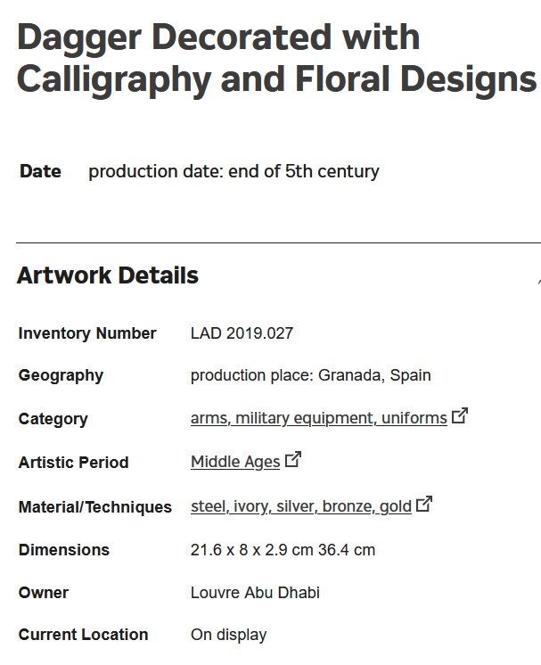 a most beautiful dagger at the time of the Moorish sultans in Spain