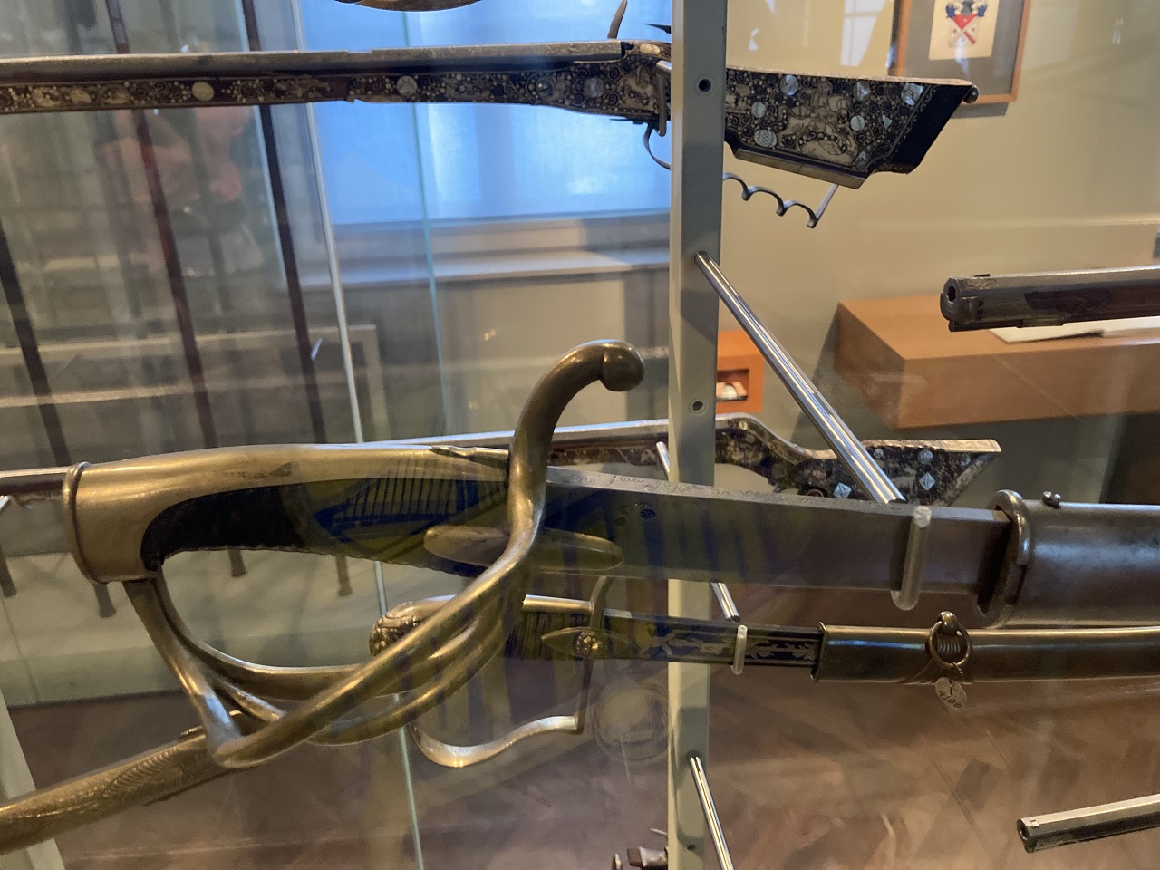 The swords from this period feature a saber inscribed with the biographies of all the Bavarian princes and electors. There are quite a few early firearms as well.