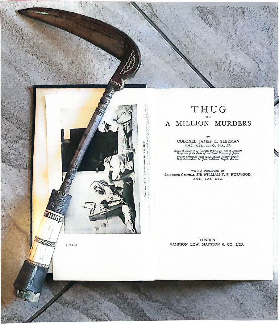 The tenuous association with the 'Thug' pickaxe and the 'lohar' remains temptingly associated, and I finally located one of these to satisfy my idea in the collection. This is simply the case for 'old guy' fascination with long ago things recalled from youth....and the countless times I watched this movie, not realizing until these later years the impact of the intriguing 'thugs' and these mysterious axes they used, though ceremoniously. Finally locating a copy of the book by Col. James Sleeman, grandson of the British officer who finally beat the Thugs, and signed edition 1940, I put these items together. I could not resist my usual humor in recalling watching the original movie in my younger years, thinking of the overplayed part of Sam Jaffee, who played the part of the native water carrier, Gunga Din, and his passionate bugling. A great parody of this was played by Peter Sellers in "The Party" (1968). So just for fun, and a serious pairing of the Afghan axe 'lohar' with the book on the thugs, along with a lighter look at the wonderful movie I enjoyed so much. Last edited by Jim McDougall; Yesterday at 07:38 PM. |