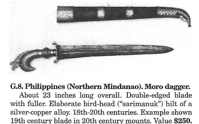 Good point- although it's very much possible to isolate the imagery based on the traditions inherent in each Moro tribe within a specific era- in my example, since it's vintage Maranao sarimanok and vintage Maranao hilt, the upturned version is the strong basis, and not the upside-down (since the down-tail emerged in modern time already). The Maranao elders and researchers that I've consulted with also never discussed the pommel in an upside-down fashion, so that says a lot.