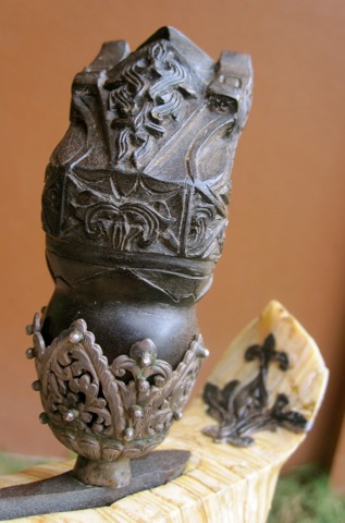 Here's a tajong hilt I've shared on a few occasions previously. I'm taking it out again as an example of what a properly finished tajong hilt look like. Notice how clean and sure the carvings are, and the consistent polish on the surface. This is the old (gold) standard for tajong hilts. Hope the new carvers can aspire to reach that standard.