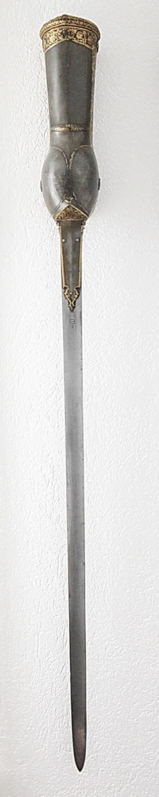 The gauntlet is of wootz, but the blade is Indian and pattern welded. North India 17th to early 18th century. |