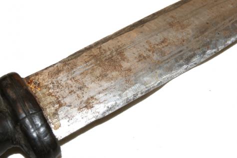 It appears to have a copper or bronze blade and pommel spike. (You have to scroll down on the ebay page to see more photos) I don't know much about this type of dagger. Is this blade material common? In my limited google research I did not see other Tebu daggers with this type of blade.The scabbard is very nice. http://cgi.ebay.com/ws/eBayISAPI.dll...=STRK:MEWAX:IT |