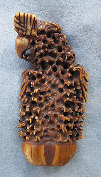 I've had this reason given to me a number of times by a number carvers. So --- just maybe, at some unknown time in the past, a carver with imagination had the tip of a horn, and asked himself what he could create from it. When we are dealing with art forms from a time and place that differs from our own, we need to be able to think in a way that also differs from 21st. century rational. As 21st century rational thinkers we would identify the need, thus reason, and seek the material. People who think differently could have the material, and then seek the use, thus need, which provides reason. |