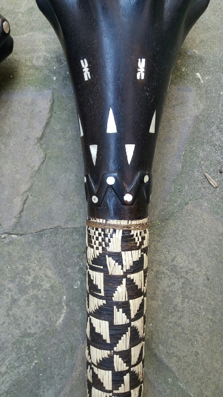 The difference between the right kind be that fighting or ceremonial clubs and tourist souvenir versions is plian to see here. The vine weave is a different colour that one might think looks old.