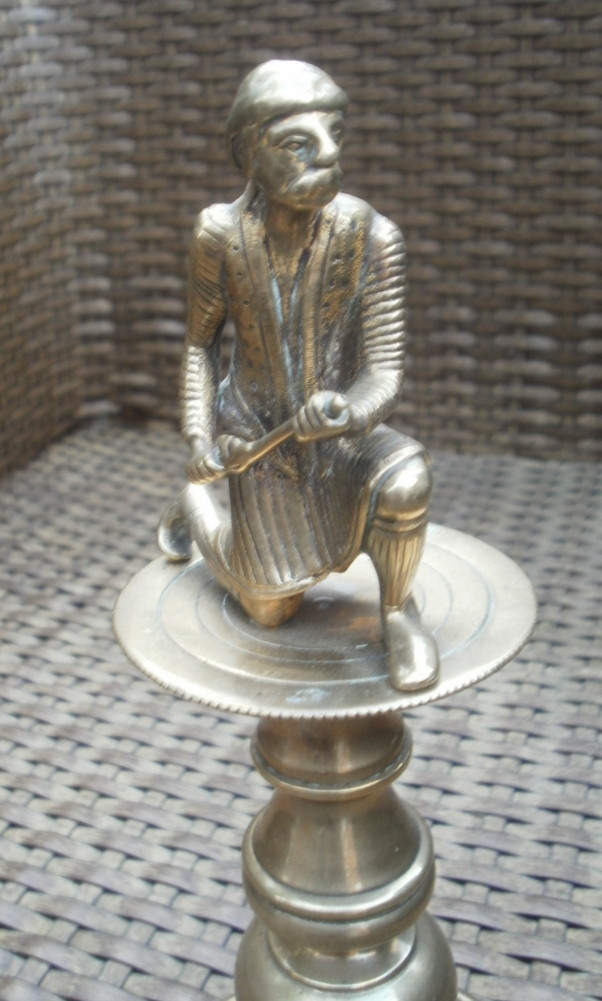 Thank you for the alternate suggestions of this little statue's origins. Just a little more on the fustanella. There is a surprisingly good article on wikipedia (here) about the history of the fustanella in Greece and neighboring areas of the Balkans. Looking at the head covering and face of this little guy, and his wonderful moustache, I think he looks Greek or Albanian rather than from the Indian subcontinent. Ian. |