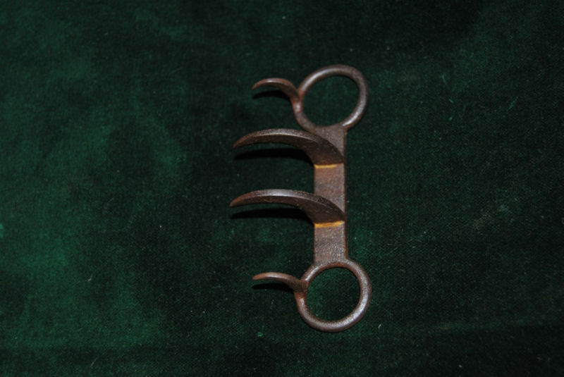 This is the only one I have seen with a single claw, the image is from a 2012 auction, here is the description. They are ofen described as having four to five claws but Brian posted an image of one with two large claws and a third smaller one, his also has a small side blade.