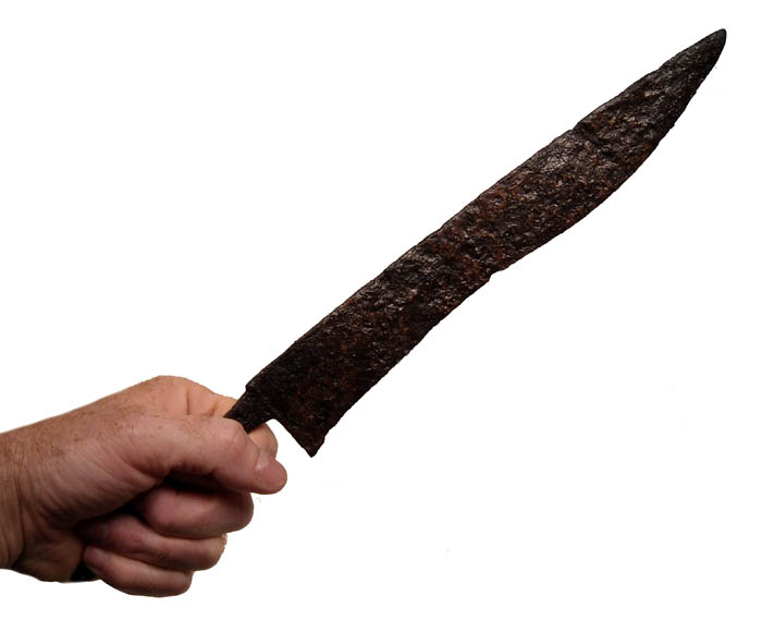 The whole Kopis-machiera-yataghan question is one that has had me thinking for some time. Below are some of my collected pics from a variety of sources, alas I neglected to nail the references to them at the time. The first set were described as a Byzantine short sword I attach the label with the pics. I found them at an online museum called the "World Museum of Man" I will post the others if I can pin down their provenance