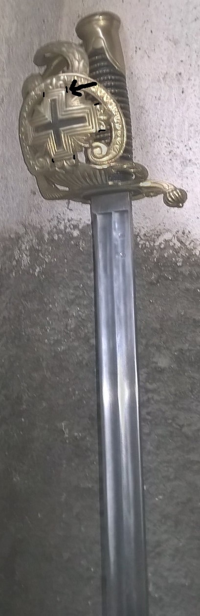 I believe that the sabre of the thread is for sale on , armae... It has the same abrupt starting fullers, the same collor of blade, and dito broad lelies at the base of the cross of course here the casting faults are largely covered with electrolytic gilding