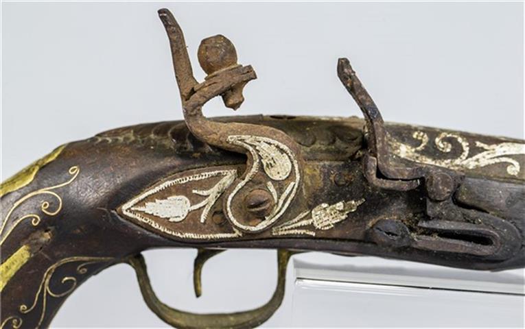 This Turkish ball butt pistol came with a fake lock, unless the pistol is an old one, with a good stock and a barrel still with some powder inside.