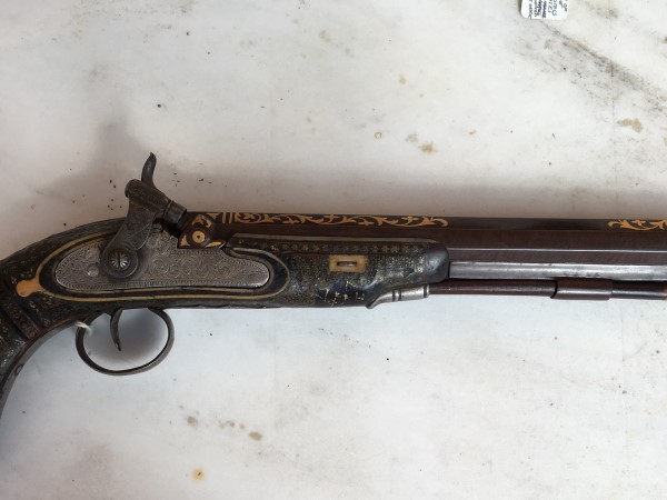 The barrell is decorated with ornate gold work & a long inscription, I assume in Urdu.