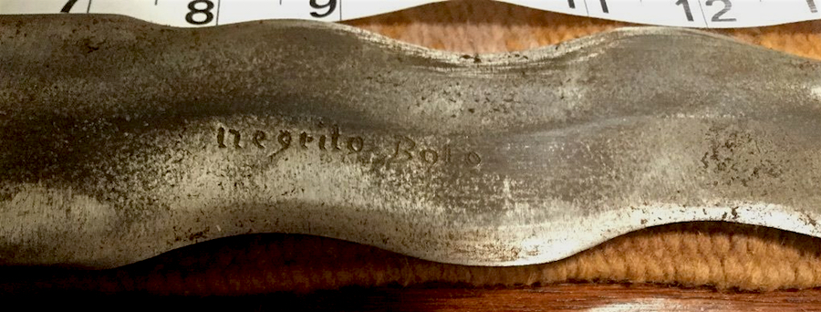 Figure 3. "Negrito bolo" (Recurved blade type). "Negrito bolo" inscribed on blade.