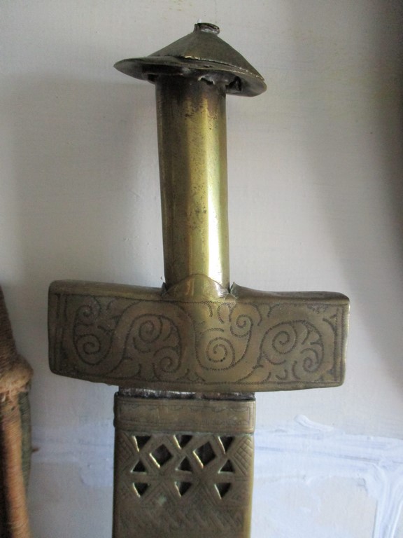 I picked this takouba up as I thought it was interesting. Looking at the takouba.org catalogue, it is somewhat similar to #49. The guard is wrapped in leather with metal plates on both sides. I am guessing this was Mandingo made or influenced based on the style of the grip and the pommel with the protruding spike.