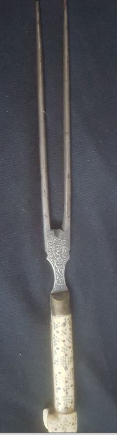 - knife made from bone ( typical Bosnian from Sarajevo) - fork made from mountain goat / chamois remarkable is that it is the first time I ever did see a square handle on a Sarajevo Bosnian knife. As for diminsions ( all in cm ) total lenght knife 31,7 blade 18,5 handle 13,7 copper connection 3 total lenght fork 31 blade 18 handle 11 copper connection 2 Last edited by gp; 9th May 2020 at 07:45 PM. |