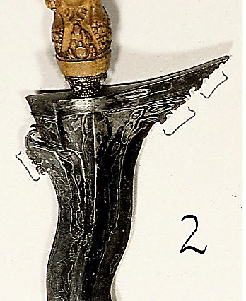 Gustav has not given full length images of the keris he has posted, and speaking for myself, if these truly did come into Europe several hundred years ago, I would not know if they were old or new from a photo. In fact, even in the hand I probably could not guess age. Again, speaking only of the keris, that is the blade, for early keris, keris from the period immediately following the Mojo era, that narrow little strip of water between Jawa and Bali meant nothing in terms of contact:- water was/is a highway, not a barrier. Other things were barriers, but not the water. Sure, we can look at the dress and we can say the handle or the scabbard demonstrates style that is attributable to a particular area, but we cannot do that with early blades, it is not until Islamic influence got a good strong foothold in Jawa that blade style of Javanese and Balinese keris began to vary. So lets not try to categorise any of these very small parts of keris, that have no provenance, into "Jawa" or "Bali" or anywhere else. Even if they did have provenance, any provenance is always open to question in the final analysis, and trying to draw too many conclusions from images of keris is perhaps the ultimate folly:- it simply cannot be done, in fact most of the people I learnt from in Solo would not give more than a cursory comment to an image of a keris, they needed it in their hand to form any supportable opinion, and to a large degree, I'm pretty much the same. All this is a diversion from focus on this newly revealed feature that Gustav has given us. Might it be possible to return our attention to the difficult matter of identification of this design element? |