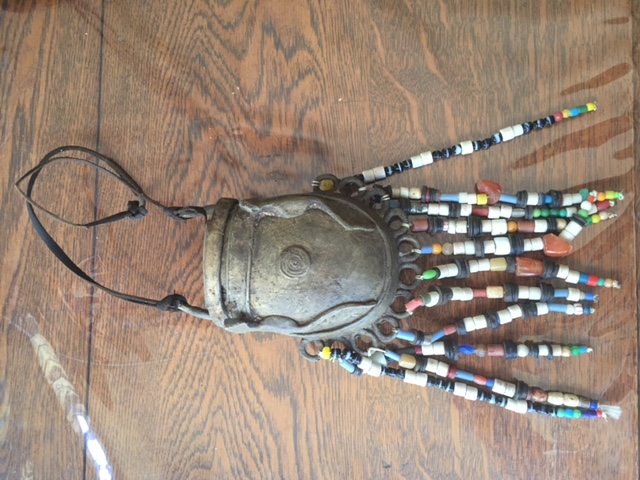 HI ,THIS IS NOTHING TO DO WITH GUN POWDER ,BUT A TOBACCO CONTAINER OTTOMON DESIGN HERE IS MINE FROM FROM WEST AFRICA, CAMEROON,I HAVE ONE WITH NICE BEEDS AND MONITOR LIZARD DESIGNS IN BRONZE