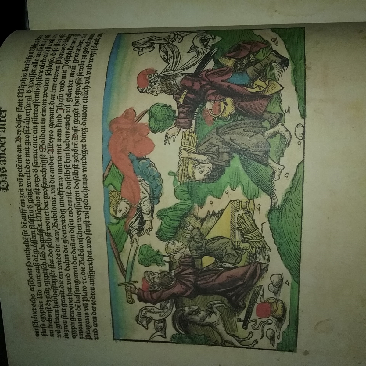As I have been the beneficiary of a great deal of valuable information by being part of this forum, I have wanted to give something back for quite a while. My own collecting experience is amateurish, at best, so I felt that providing some reference material might be my best contribution. I finally found time to flip through the extensive work known as the Nuremberg Chronicle. This text was published in 1493 in the city of Nuremberg. Its pages contain over 1800 illustrations made from 645 woodcuts (many images were used more than once). Having gone through these, I have counted over 80 images of swords and other weapons depicted. Being that these are illustrations of weapons from a very specific date (I'm going off of the version printed in German - so December 1493, to be exact) and from a specific region, I thought there could be some value in posting the images here. If nothing else, it could provide a frame of reference against which to consider other indicators of dates/form/style/etc. I'll start by posting the first ten, or so, images. If they seem to generate interest, I'll continue with the rest. While they are limited in the fact that they are woodcuts, and there is only so much detail that can be achieved through that medium, one can still discern variations in hilt type, pommels, blade dimensions, etc. Even a nice buckler in there (6th picture below). There are also depictions of how certain weapons were carried, and I am surprised by how prevalent thrusting attacks were depicted throughout, compared to cutting/slashing. This could just be a function of containing the action into a small space, but still seems notable. In a later set (not posted here yet), there is an impressive two-handed sword, with a blunt tip being used in a beheading. Is this an attempt to depict an executioner's sword, or did the tip of the sword simply not get depicted due to the limits of wood block printing? The first bulk of images portray scenes from the opening chapters of the Bible. I've included one pictures of carpenters working on the Ark to show woodworking axes, and how the artist made these distinct from the axe used by Cain against his unfortunate brother a few pages earlier. If only ebay could so well tell the difference between carpentry tools and actual weapons! Also interesting is the curved sword carried by, I believe it is Abraham, when he scares the heck out of his son. My grasp of Old German isn't great, so please correct me if my context is wrong. Anyway, the curve and orientation of the hilt are 'unique', perhaps to portray the exoticism of the scene. A later set of images depicts an "Ottomanischen" with a clear depicted shamshir hilt. Anyway, I'll start with these pictures. If the consensus is that I should post more, I'm happy to do so. Just let me know. -Rob Last edited by shayde78; 17th July 2020 at 09:17 PM. |