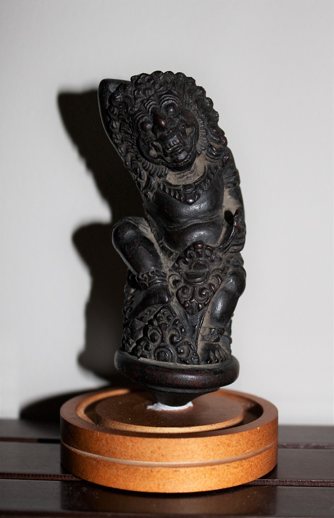 I found remarkably few references (in western Internet) to Rarung and no Iconographic source (other than this one above ) to compare to my carved figure on the Hilt of may Balinese keris. But here are picture of this hilt for you to see. |