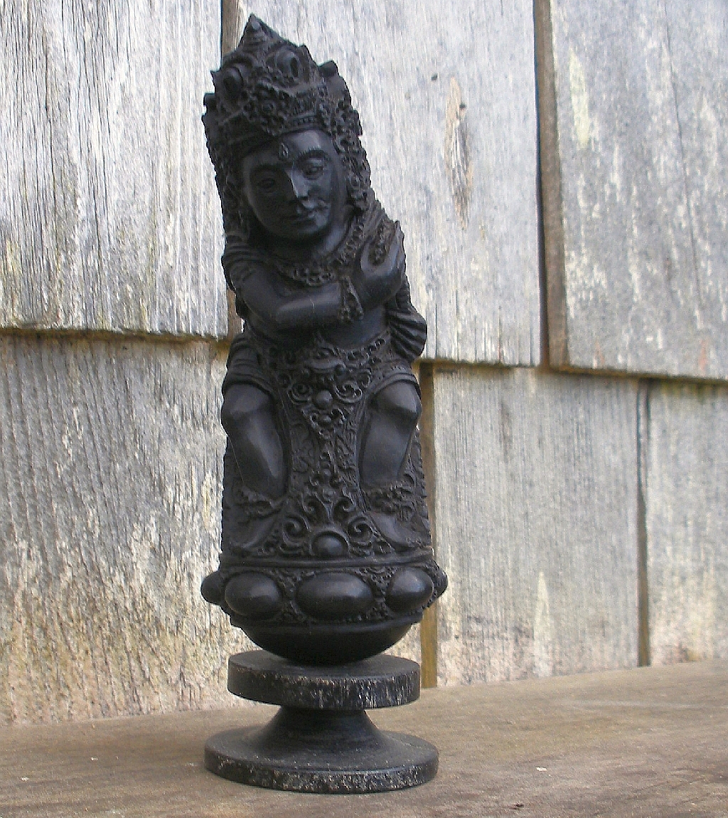 I find interesting, that this recently carved figure, which perhaps could be identified as Rarung, holds a piece of fabric in each hand.