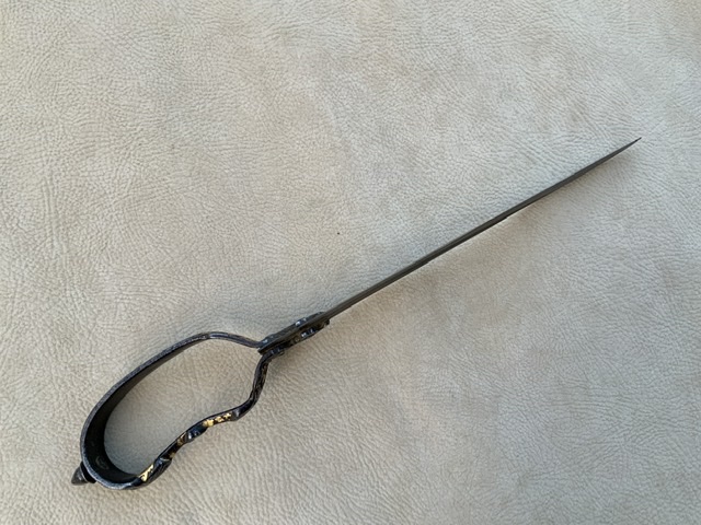 Interesting model with a nice hilt !! a small model, maybe made for a child/girl ? It seems there is a pattern on the blade ( wootz ??) A really nice surprise ! |