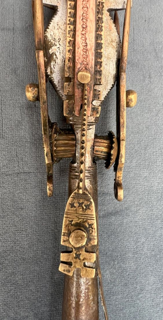 My feeling is that it is Africa, I can't say anything more precise yet. The item does not give the impression of being a souvenir for tourists, it is too complicated, although the work is primitive. African souvenirs are simpler and usually copy or reproduce examples of cold weapons of local tribes. Moreover, no analogues have been found yet. African tribes used unusual items during celebrations and various rituals. |