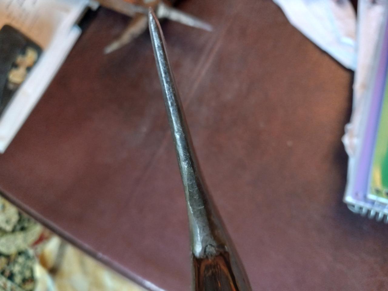 The haft does indeed look very old. It could perhaps be a 'field piece', a primitive type spike axe/tomahawk. The langets not typical for -hawks, but there are so many variations based on the smith. It could still be a much earlier repurposed piece as well. I see what you mean about the thinning of the eye-