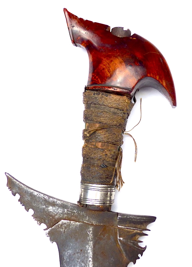 Drac, thanks for your thoughts. Also, I would not rule out a repair in the late 19th C Spanish colonial period. The overlying plaited cord grip shows that it continued to be used after the repair.