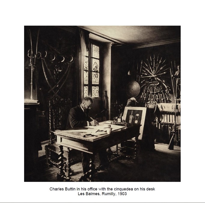 The photo of Charles Buttin in his study at Rumilly, France 1903 is a classic image well known from the 1933 reference on ethnographic arms of his collection......and the cinquedea seen on his desk.