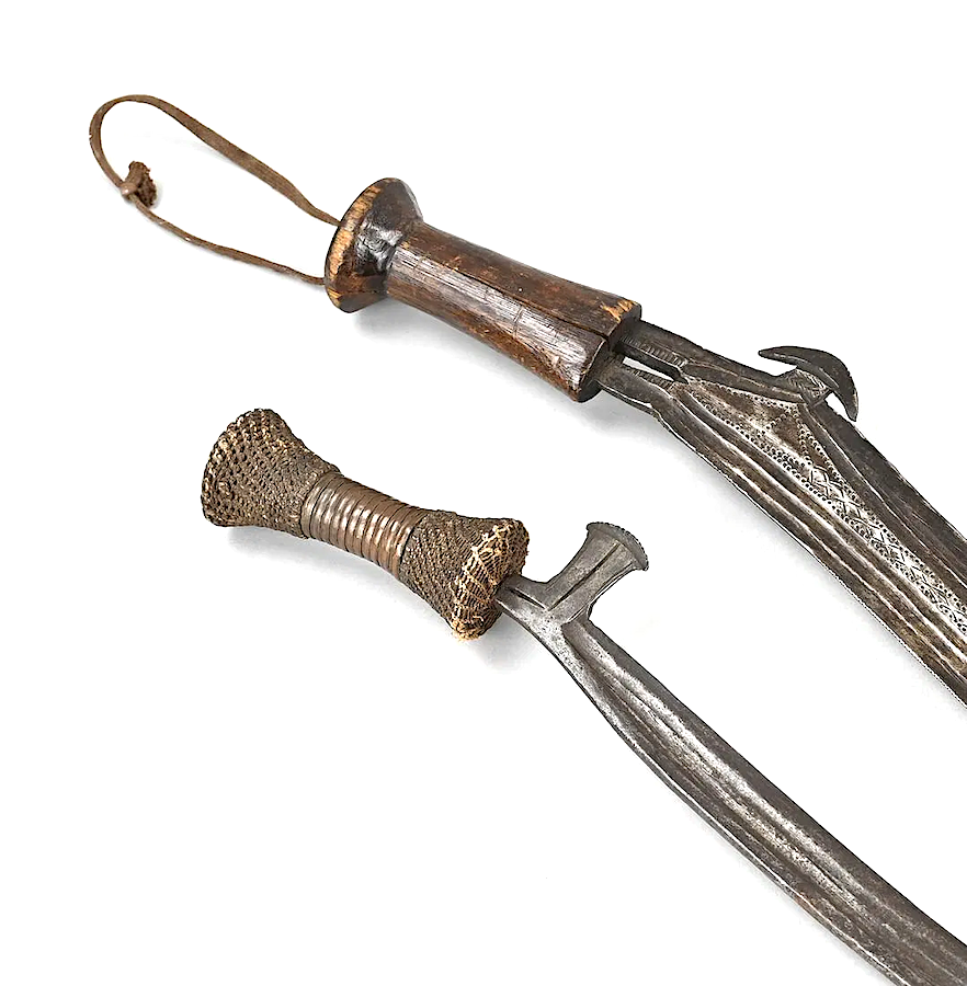 As for their use, they were obviously melee only implements. They are not only not suited for throwing, but coexisted in the same societies with actual throwing knives intended for such a use. 19th century sources clearly state that both (sickle swords and throwing knives) were distinct implements.