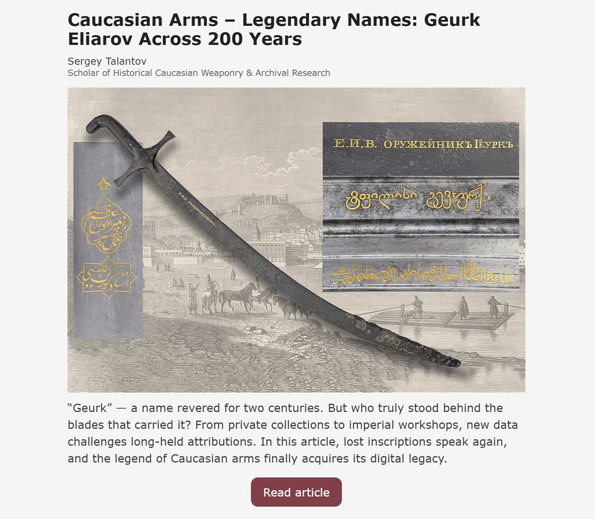 Dear fellow collectors, I can’t stop myself from sharing a few thoughts on the recent article by Mr. Talantov about aggregating data on major Caucasian workshops and legendary names. For years, I’ve been genuinely frustrated by the lack of serious, large-scale efforts to bring together solid data on specific workshops, decorative elements, dating, and marks in the field of Oriental arms and armor. And to be fair, until recently, the digital and technological tools needed for this kind of work simply didn’t exist. Most of us were left relying on shelves of sometimes poorly illustrated books, trying to figure out what to trust without access to real comparative data. I’ve lost count of how many times dealers told me a piece was a “once-in-a-lifetime opportunity,” usually backed up by a single photo proudly shown at the top of an open book as supposed proof of rarity and value. Now, it finally feels like things are changing. We’re getting access to real reference material—numbers, variations, high-quality images—and, most importantly, knowledgeable experts we can actually talk to and learn from. Caucasian arms aren’t my main collecting field, but I’m honestly proud of what’s happening here. If Sergey Talantov and his team are reading this: you have my deepest respect. You’ve done what many of us only talked about doing—not for personal prestige or a private collection catalog, but for the entire community and for future generations. I’ve also heard that similar large-scale aggregation projects are coming soon in the Indo-Persian field, with tens of thousands of openly available data points. I can’t wait. Time to start photographing my collection and submitting it. |