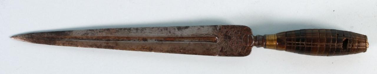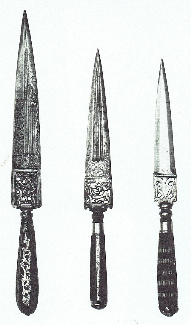 This rather nice knife sold recently at auction. It was described as an "English Renaissance Engraved Marriage Knife and Sheath." Possibly 16th-17th C.