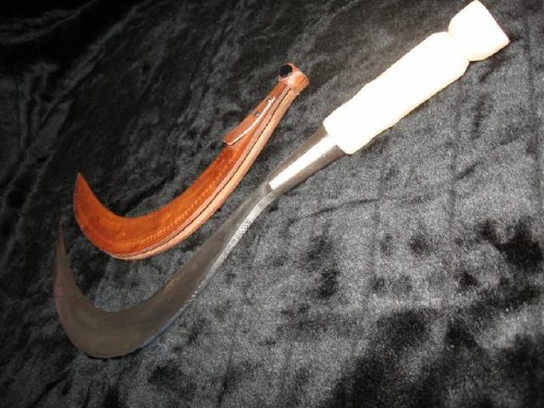 Don't think it is a weapon but a tool for harvesting. But a kitchen knife can be a mean weapon as well.