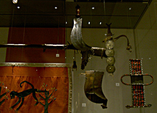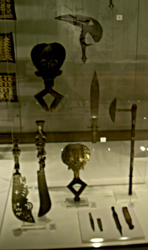 This picture was taken at the Royal Museum for Central Africa in Tervueren (Belgium). Even now the displays at that museum are 'old fashioned', but they show a lot of tribal art (weapons included).