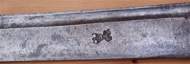 Here's a blade I picked up a while ago and although probably dating from the latter half of the 18th Century, well after the pirate "golden age", I think it illustrates quite well the type of weapon most associated with buccaneers and pirates. The blade is 26 inches long pretty sharp and is most likely from a Government issue cutlass/hangar type weapon, the GR mark. If the makers mark on the tang rings a bell with anybody please let me know. Any more info or corrections, again, please let me know. Regards, Norman. |