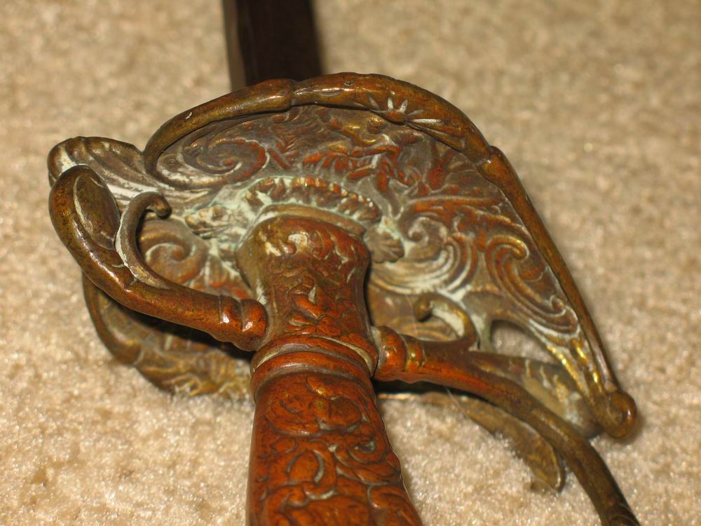 The boat shaped hilt is brass(?) and was once gilted. The blade however I do not think is a smallsword one, and I suspect it might have been taken from one of those schlagers popular among German students in the 19th century. Could the hilt be earlier, from a smallsword, or is this simply a fancier schlager? I have attached some pictures and am looking forward to your comments. I will be gone for the next few days, so please excuse me if I am unable to answer responses to the thread. Regards, Teodor |