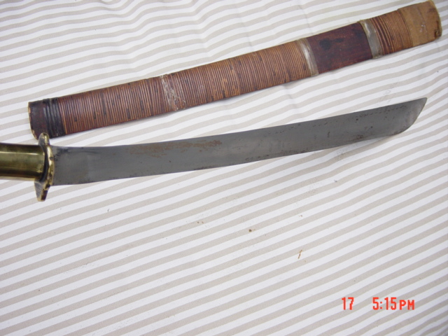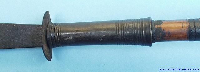 I only ever had one Montagnard-style blade, but with a completely atypical the handle. I never put it on the site and now it has passed out of my hands. Andrew and Ian have some very nice ones, as you will see. The mesh on my dha's grip actually doesn't look too hard to do. Here is a close-up of another handle that uses a similar technique: ![]() I will post some close-ups of mine as well. There are also various things that you can do with bone and ivory, but the grip would not be very good. I rather like the way shagreen is used on some Shan-style dha: ![]() They usually have brass or copper nails holding the shagreen on, which are placed in a pattern and work rather well as finger-grips. JT (RhysMichael) has some very nice ones, of which this is my favorite: ![]() This one is Ian's