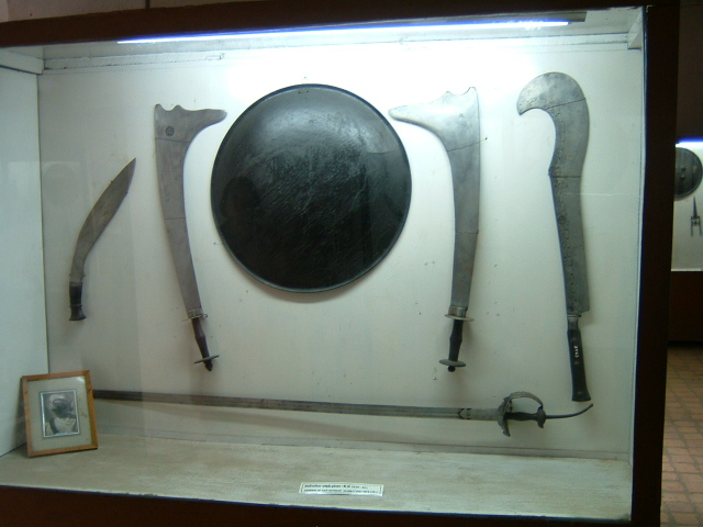 photos taken in Kathmando National museam. Pata, Axes, tulwar, strange billhook/pike thing on the right! etc. Pix. copywright Spiral JRS 2005. If used elswere please include aknowledgment. Spiral |