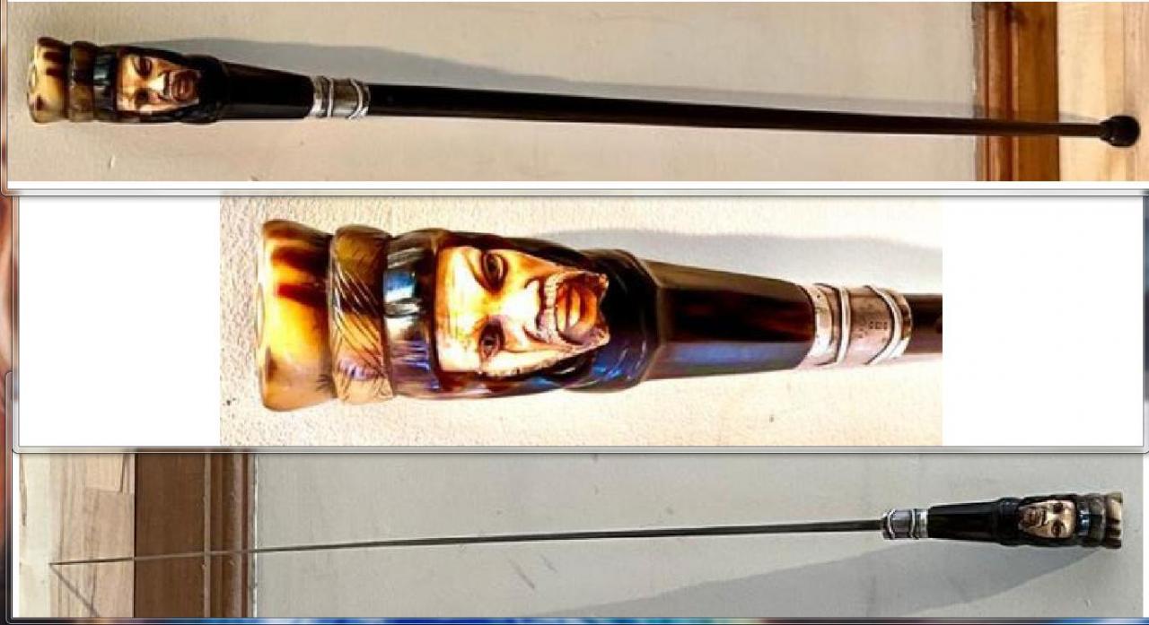There are 162 for sale at present with prices ranging from £3,950 down to £275. Brigg of London appears to be the top maker. Here's the expensive one: Mahdi of Khartoum walking stick sword stick. On the silver collar is having the illustrious name Brigg of London. Hallmarked for 1902 made from Ebony Malachite silver horn and bone with a fine steel blade, overall condition is superb with no damage whatsoever a truly finely made of exceptional quality walking aid. Above the Briggs silver collar is a smaller one with what looks like Arabic symbols. This is the Flagship for anyone's collection. Total length of 94 cm diameter of handle is 5 cm the ebony sticks diameter from handle being 18 mm tapering down to the bottom 12 mm, from steel tip to the top of the handle is 85 cm. Attachment 246766 £1,500 will get you one with a silver mustache comb and mirror secreted in the vulcanite handle. Obligatory in 1888 Birmingham! |