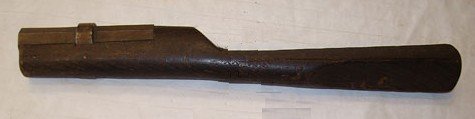 Yes, the cannon looks to have some element of lathe manufacture as it is pretty evenly made (as opposed to the roughness of hand forging). The Chinese used handcannon type designs well into the 19th Century (and maybe into the 20th in small villages), and my guess would be this is such a piece. My initial plan with this gun was to give it an original Chinese stock if I found such a stock to look good (aesthetics are important here). However, after countless hours wasted (okay, not entirely wasted, as I learned a lot about handgonnes in general, but I didn't find what I was looking for), and nearly 1/2 dozen forums joined and questioned, I haven't found any images or references to a complete Chinese gun of this style outside of the small image I posted already of a "pistol" type firearm. So I'm now also open to the idea of a suitable European stock. In spite of the obvious manufacturing differences between my gun and the much older European variety, I think they were probably used in similar fashion, and bear a superficial resemblance. And again, while I want some historical accuracy, I'm putting the appearance first on this as it is primarily a decorative piece, with it's value as a historical example necessarily running a bit behind that. If worst comes to worst I can marry it to a stock that looks cool (to me) but is a bit anachronistic, but given that there does seem to be a bit of variation with these guns, I'm still hoping to run across a historic example that would be suitable, or perhaps be told "your sketch of stock C might have happened, but stock B is completely preposterous because of yada yada yada." Anyway, this isn't my field of expertise and I've obviously got a lot to learn, so I'm open to all advice and suggestions. |