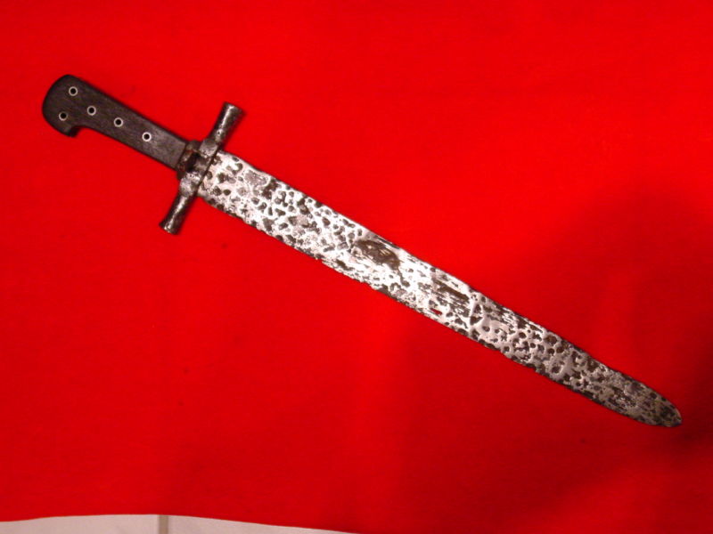 The style of the blade, especially that of the tip of the blade and the grip made of cast brass makes me think that this is nothing else than a European fascine knife of the 19th century. For me this is not as old as it is said to be!
