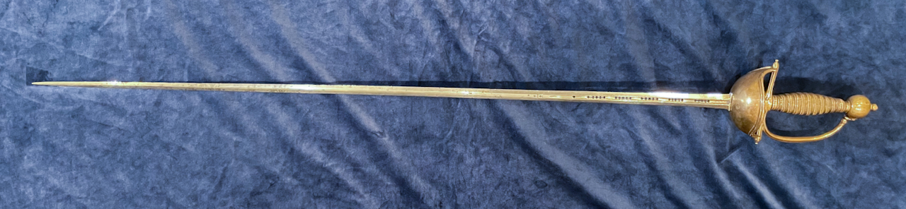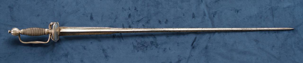 This supports another curiosity of mine: I have a Gill-made 'short' smallsword, custom made for a naval officer that has been unique in my experience so far. Now I have sight of another. My blade is only 27" long yet the hilt is enormous. I had always presumed the short blade was a naval preference and now I have additional support for my presumption. I also have sight of the use of an heirloom rapier blade in a smallsword. Thanks again. |