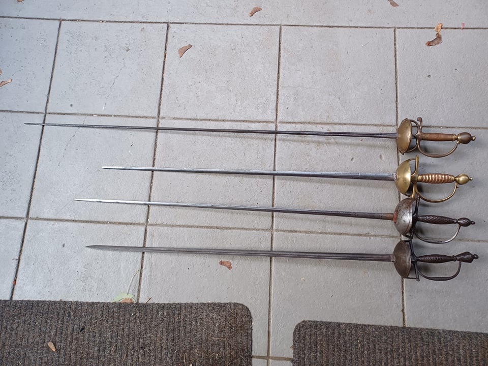 You’d need to examine the blade profile and taper to determine if it was cut down though. Something to keep in mind, the style of smallsword fighting in the Iberian and Mediterranean region was different from that taught in France. This style retained some cuts and they used longer blades meaning they still ‘fingered the guard’ to retain point control. But 40” is long; by comparison, my largest smallsword is Spanish, and it has a 88cm blade with another 3cm between the guard and and the quillons. To your other comment, while the trefoil blade was the most popular form for smallswords in Northern Europe and the UK, other profiles persisted and didn’t completely disappear. |