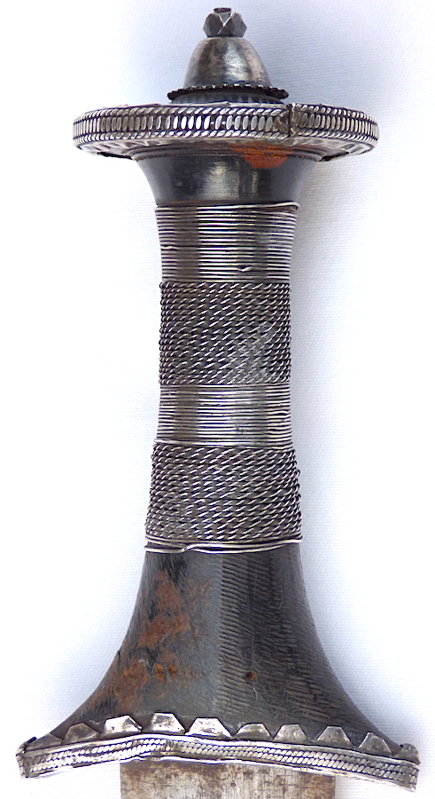 Thank you for your assessment of the Sudanese dagger and narrowing down its age to about 100+ years. Close enough to call it "antique." That is a very beautiful dagger that you show. Congratulations on finding such a prestigious piece. I am grateful that I ended up with an "above average" example out of this lot. |