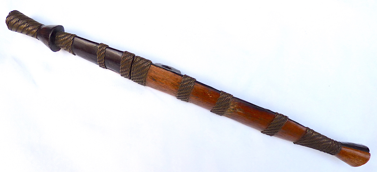 Thanks for your prompt replies and very helpful information. I appreciate the ID of these two knives. African knives and swords have not been a major focus for me. However, I do like both of them and I was pleasantly surprised by the quality of both. The little Sudanese dagger is a very nice knife and looks to be reasonably old, perhaps late 19th C. The South African large knife/short sword is of interesting construction and good quality, as you noted. I think this one is early- to mid-20th C, and does not seem to have been used. Each was made as a weapon, and not simply decorative, tourist items or for ceremonial use. Ian. |