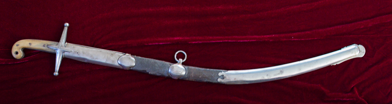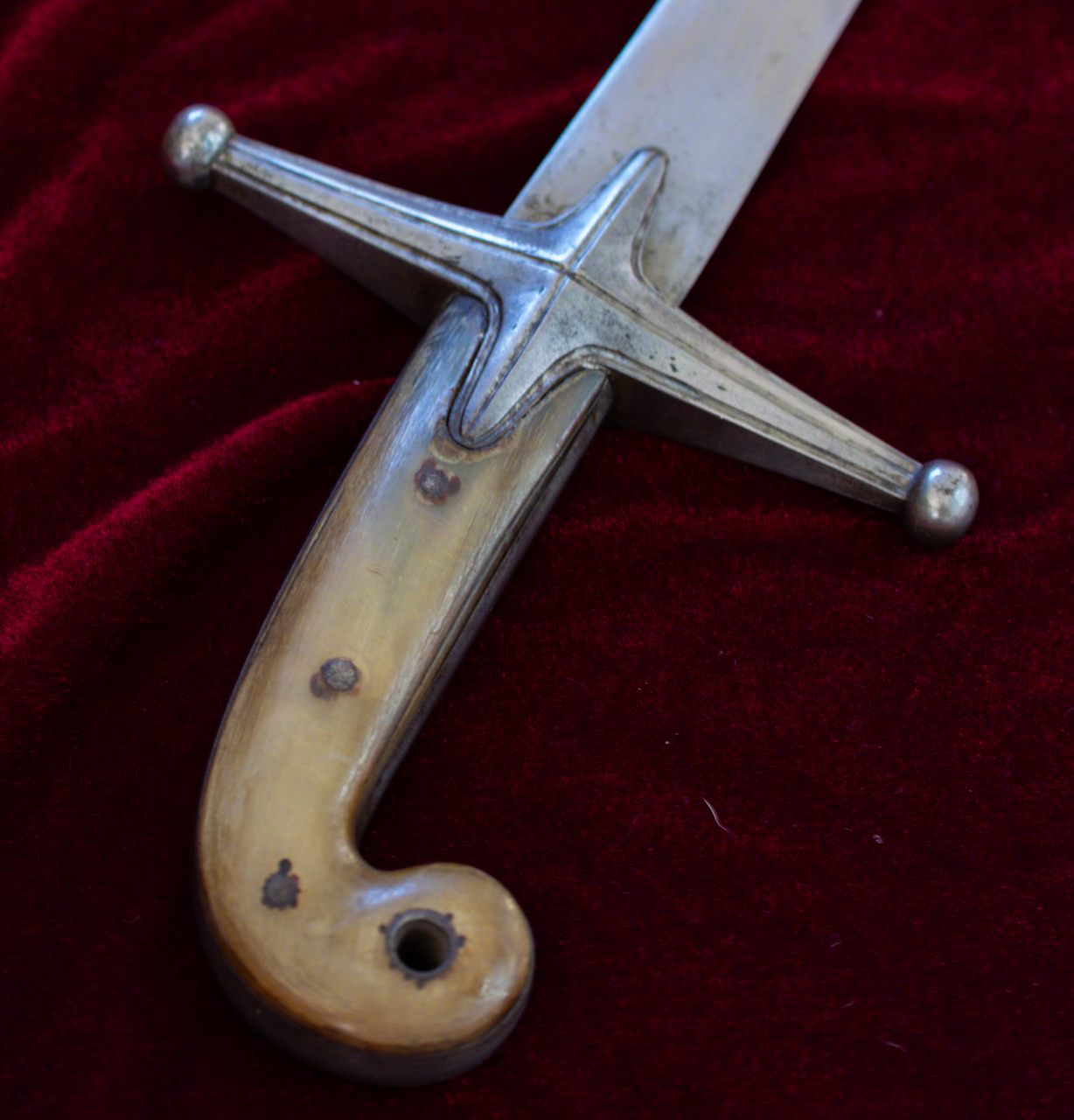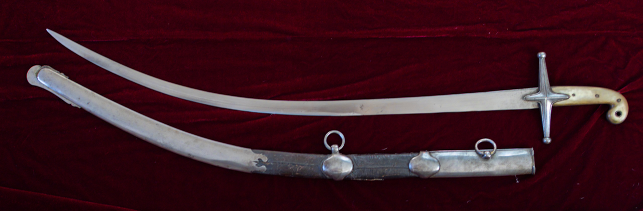 Attachment 234443 Attachment 234444 Many authors claim that this coincided with the French invasion of Egypt; and the bravery of the Mameluke warriors in their attacks against the French army. Others point to the British experience in India where Eastern influenced blades were often mounted on Indian handles. Personally I'm inclinded to lean towards the Egyptian connection, if only because of the way European grips and crossbars mimic the originals. Regardless of their origins, like hussar fashion, mameluke swords gained in popularity throughout Europe from the beginning to the middle of the 19th Centruy. With many officers and regiments adopting a variation as their dress sword. Today the tradition continues in the form of the British 1831 Pattern General Officers, and the US Marine Corps dress swords which are direct copies of North African mameluke swords. While local European and British manufacturers were quick to produce their own variations of the style, it was also common to mount Eastern produced blades on European hilts. My sword is likely one of these, the hilt proportions are very European to my eye, and it lacks the wire stitching on the scabbard. Also the scabbard drag looks like the French style. The sword was sold as circa 1810 - 1830, although I personally lean on the later end, the grip scales are white horn, so cow or buffalo, but most interestingly it has a heavy 'Eastern' or shamshir blade. Attachment 234445 Attachment 234446 The sword alone weighs 920 grams and the blade is 805mm long. What surprised me was how thick it remains for it's entire length, still 3.5mm in the last 50mm, but apparently this isn't uncommon for this style of blade. I would welcome any additional thoughts and feedback on this sword as I don't have a lot of experience with them. |