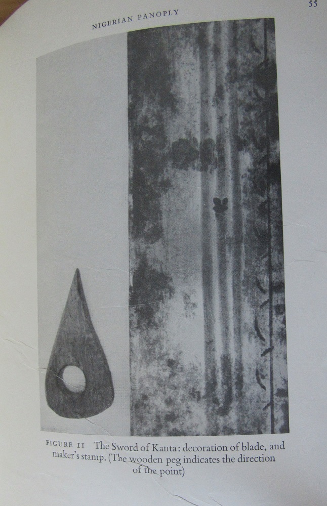 Does Bivar give any reason to adscribe it to Kanta Muhammad Kotal? Because one misconception I have seen around is treating Kanta as part of his name, when it is his title. As ruler of Kebbi, he bore the title Kanta, as did all of them. So if it just associated to a "Kanta", it might be one of his descendants from the late 1500's or early 1600's It is a shame to not be able to see the full blade. If it was of a 16/17th century style and/or manufacture, it would raise interesting questions. In any case, this one will totally depend on the hilt, so I hope someone can shed more light on it. I don't know why, but it rings the bell of Mamluk Egypt, at least the upturned quillons. |