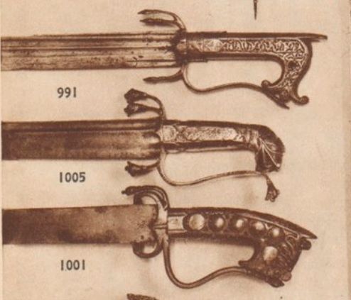 If the questions is whether it is plausible, then things get more complex. The main problem is the lack of similar hilts we can compare it to. In fact the only example of a hilt made entirely of metal with this kind of guard and a pommel in the shape of a monster or lion head is the one on the nimcha, #67 in the "Gold and Damascus Steel" catalogue. Number 1005 in Buttin comes close, but it has a typical nimcha guard. Attachment 241535 Hopefully there are other examples out there, but these are the ones I am aware of. A couple of examples are far from enough to establish any trends, but for what it is worth, Buttin dates 1005 as late 16th, early 17th century. Number 67 in "Gold and Damascus Steel" is dated as early to mid-17th century and that dating makes a lot of sense to me. And then there is the blade on the "Sword of Kanta", which we cannot see in its entirety, but which we know is a European blade, most likely from Northern Italy and dates most likely to the 17th century as well. But the blade itself is not sufficient to provide dating, because as Bivar points out, it could have been paired with the hilt at a later point. Broadswords were preferred over sabers in the Sahel, but then there is another sword in Bivar, from the Emirate of Katsina's regalia, which as a 14th or 15th century Mameluke saber blade. Based on that we cannot dismiss Bivar's point - this may have originally been a saber with the hilt then transferred to a European straight blade. Overall, it is more likely that this sword is from the 17th century, and belonged to one of Muhammed Kanta's successors, but there is a possibility that the hilt may indeed have been something he held and used. |